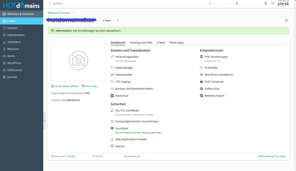 - PHP-Einstellungen können Sie selbständig konfigurieren